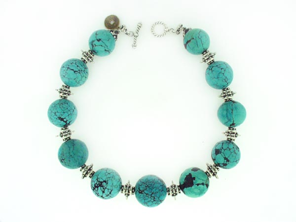 Single strand round carved extra large Turquoise 25mm W/ fancy Go